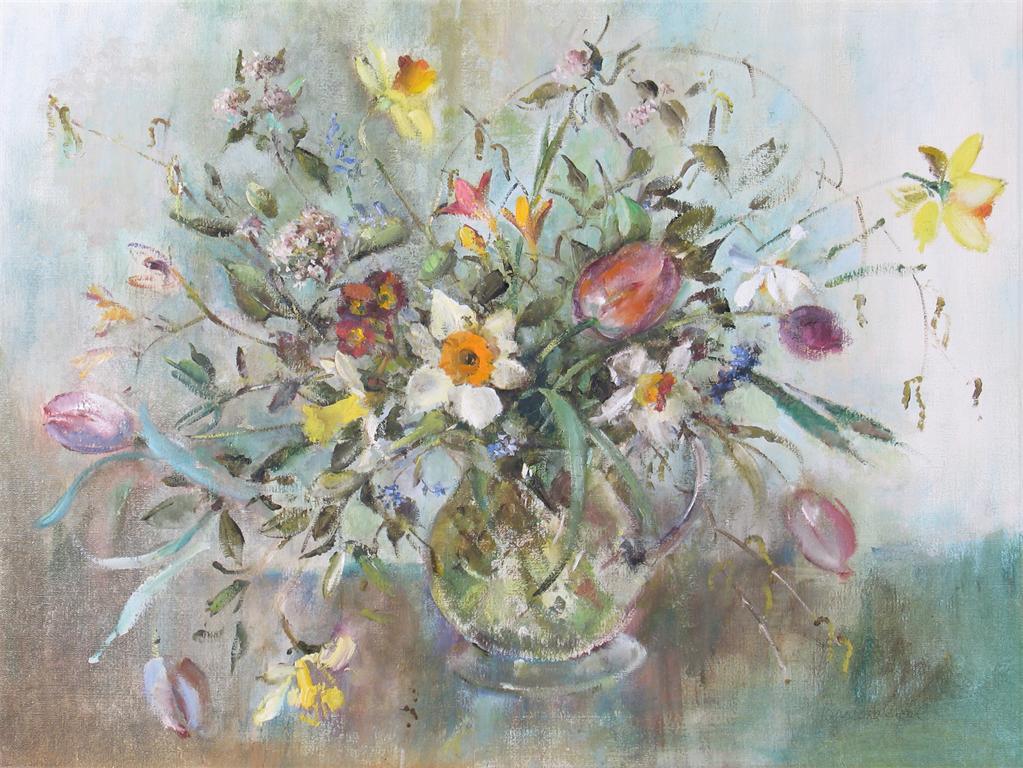 ‡Barbara Crowe (b. 1942) Spring II - Flowers Signed also signed and titled on a label verso Oil...