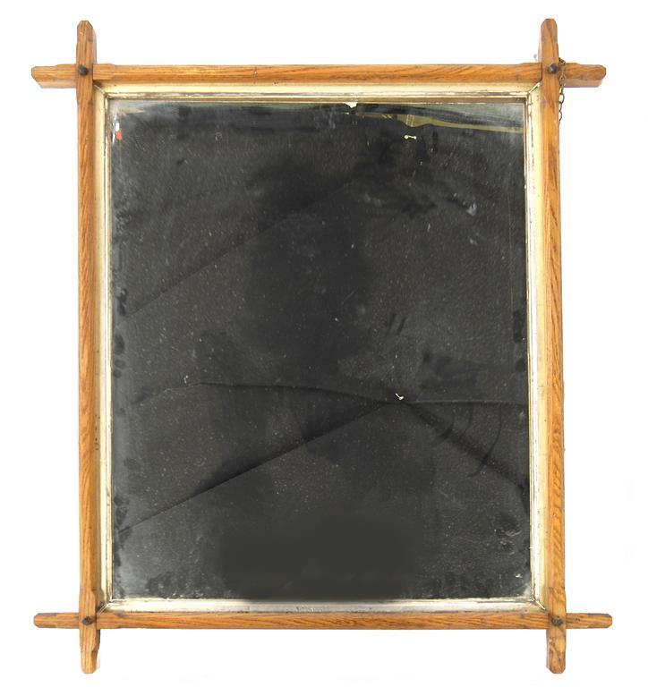 A Gothic Revival oak hall mirror simple pegged oak frame unsigned 75cm. wide