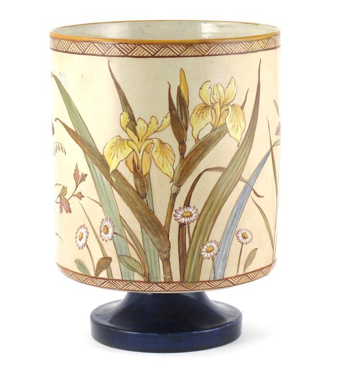 A Minton's Art Pottery Studio drum jardiniere on pedestal foot