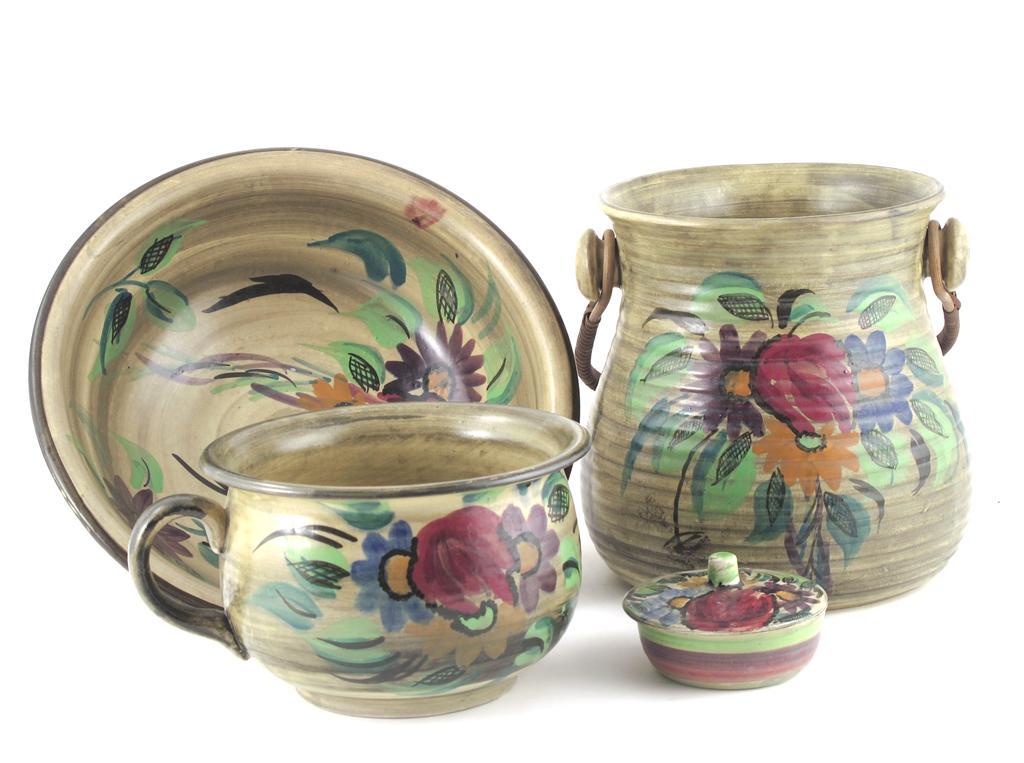 'Gardiniere' a pottery wash set designed by Mabel Leigh painted with flower in colours
