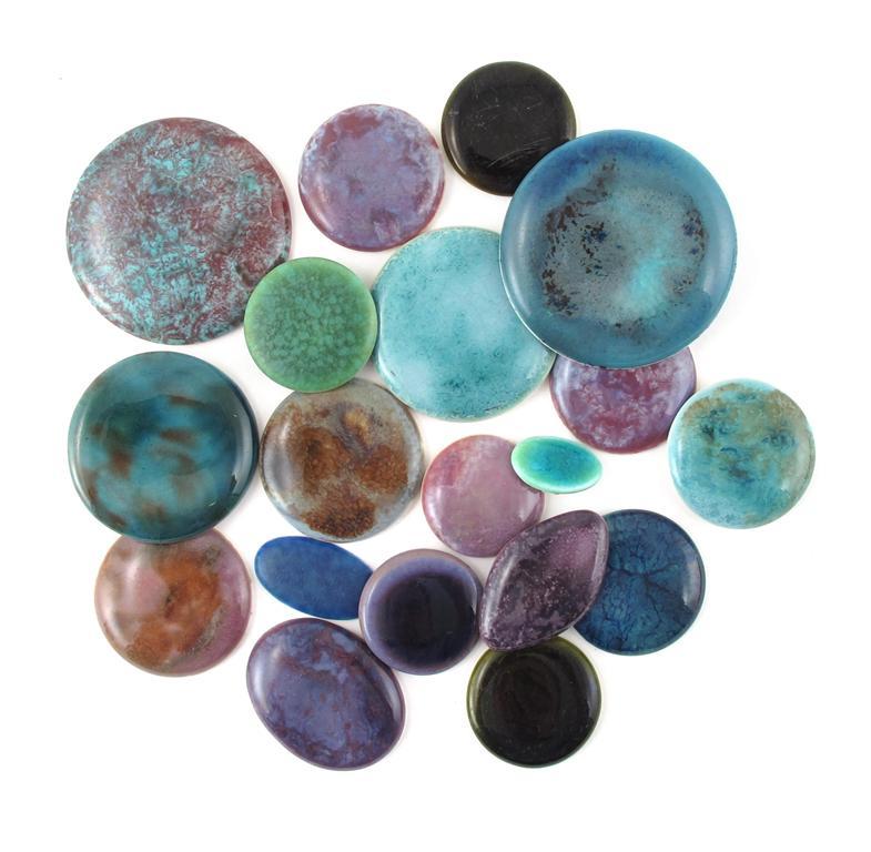 A collection of Ruskin Pottery stoneware buttons some with impressed marks