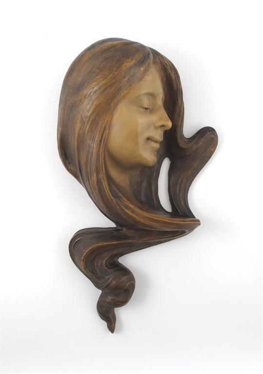 A large Goldscheider Pottery Art Nouveau wall mask by Cardenas