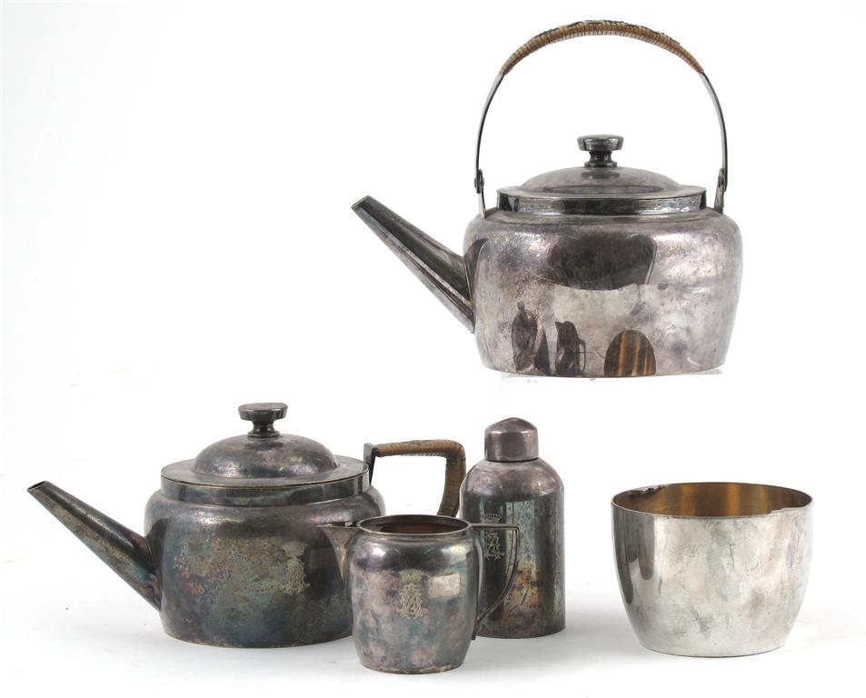 A Hukin & Heath electroplated Picnic tea set designed by Dr Christopher Dresser