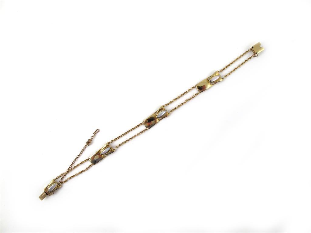 A Theodore Fahrner Secessionist link bracelet yellow metal set with mother of pearl teardrop panels