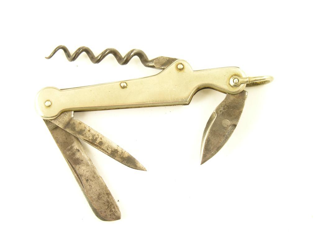 A left handed combination corkscrew, with a grooved helix and three blades, two marked THE DOUGLAS, HURBERT. M FAWSITT & Co, SHEFFIELD.