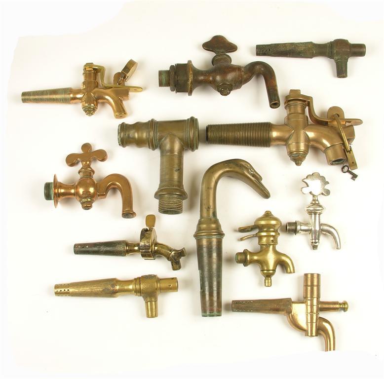 Eleven Taps; including a brass example with a swan's head handle; two with padlocks by Loftus;...