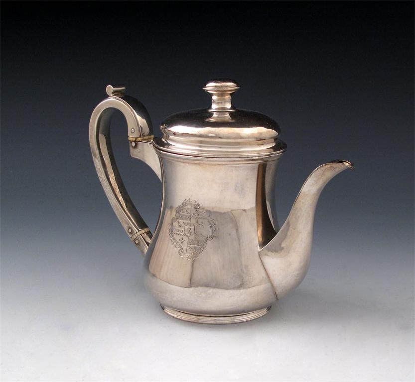 double skinned baluster form, scroll handle, engraved with an armorial, on a circular foot, height 15cm.