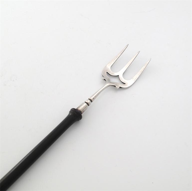 A late-Victorian silver toasting fork, by Slater and Holland, London 1899, tapering ebony handle with a ring terminal, length 62.5cm