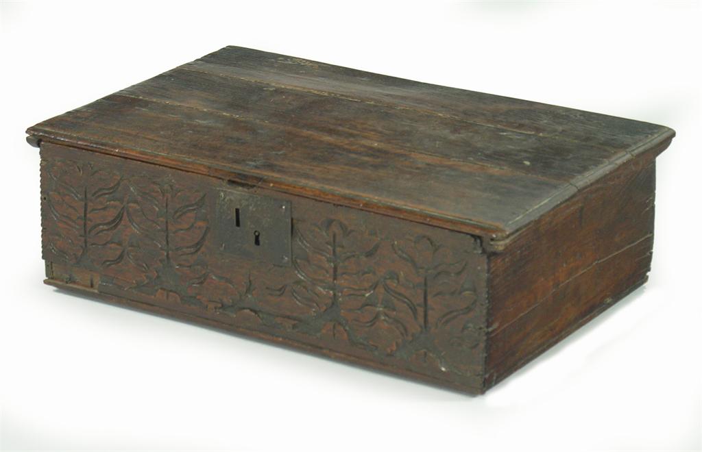 A late 17th century oak boarded box