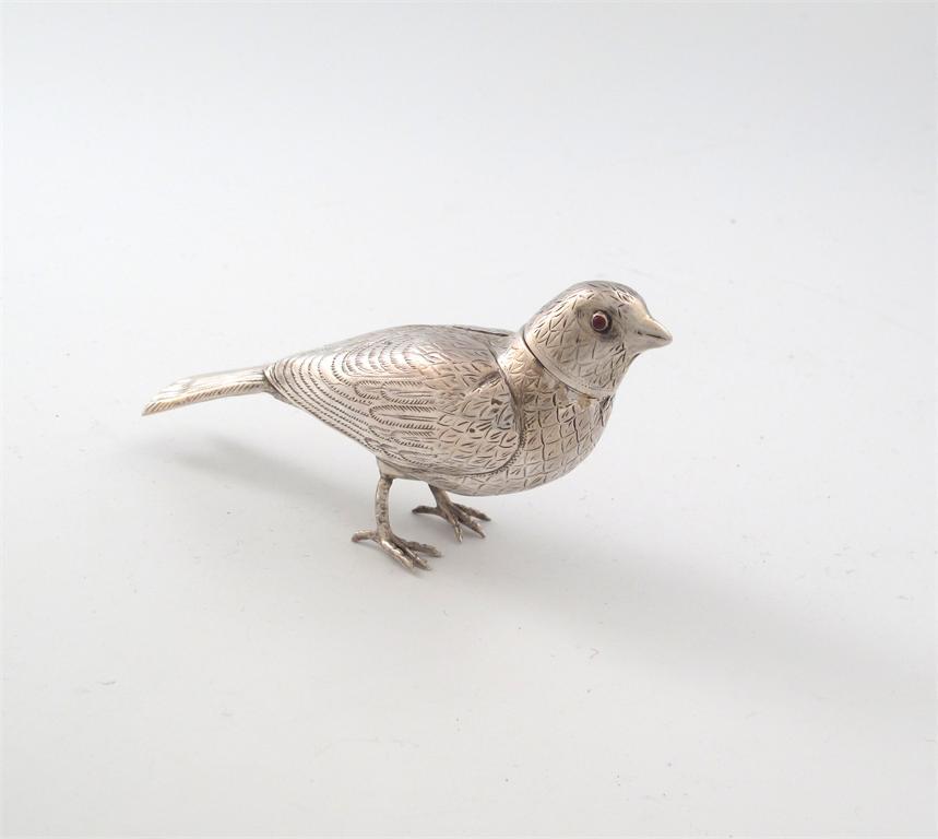 A late-Victorian silver novelty silver bird spice box