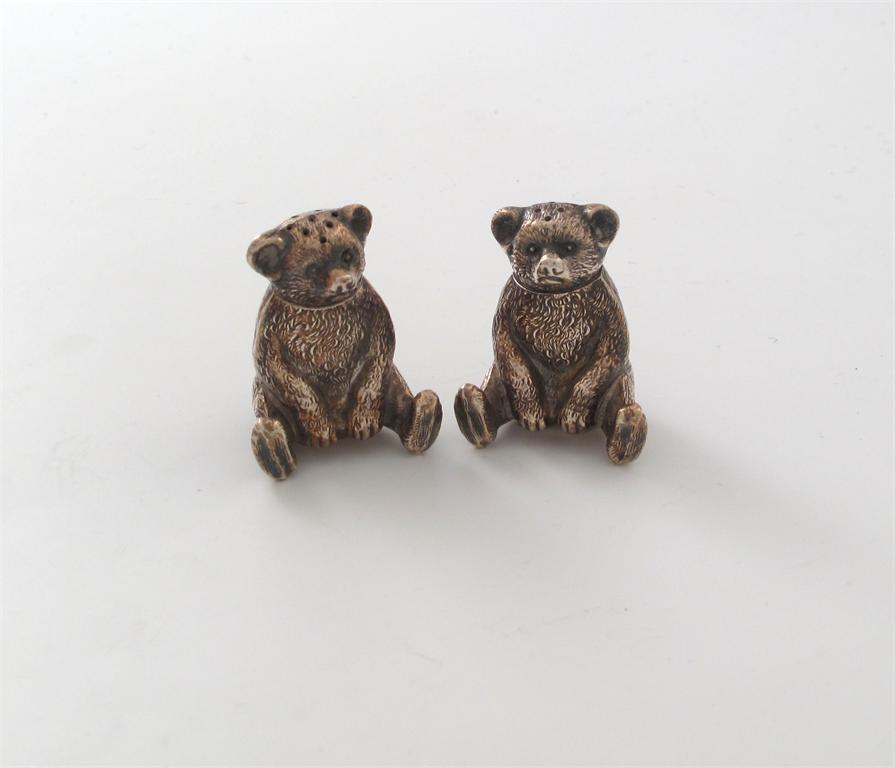 A matched pair of Edwardian novelty silver teddy bear pepper pots,
