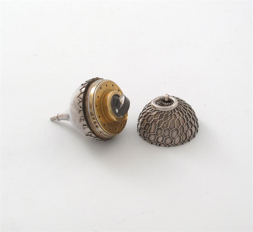 the screw-off cover opens to reveal a gilded interior with a scent bottle, and a row of holes, height 5.5cm.