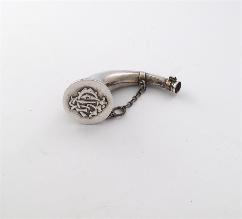 A Victorian novelty silver horn vinaigrette scent bottle