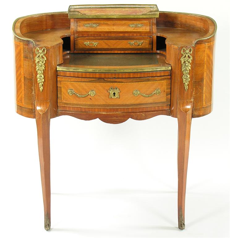 A French rosewood mahogany and gilt brass mounted bureau rognon