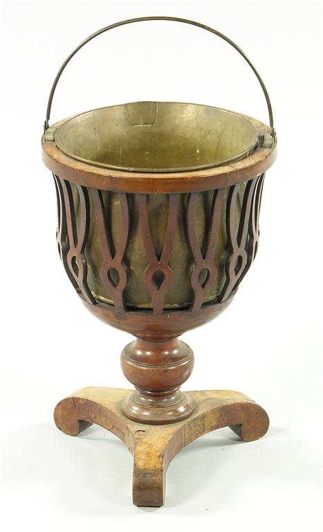 A 19th century Dutch mahogany teesthof, with a brass liner and swing handle, 19in (48.2cm) h, 12.25in (31cm) dia.