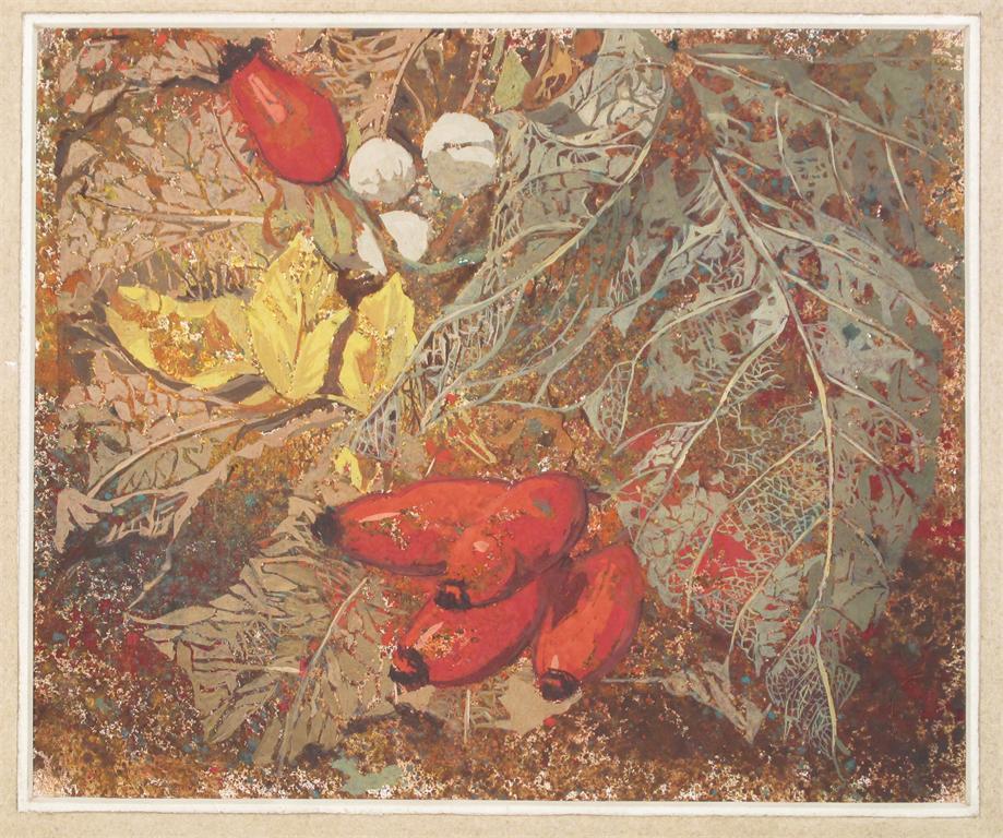 Ingrid Gerhardt (German 1925-2002) A study of leaves, berries and fruit Gouache and watercolour, mounted, unframed 20 x 24cm; 8 x 9½in
