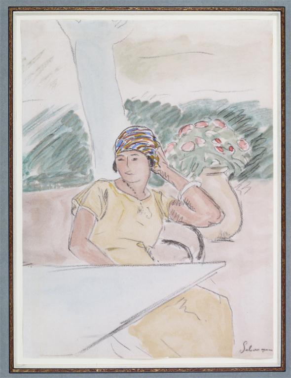 Henri Lebasque (French 1865-1937) A woman seated at a table Watercolour and black chalk