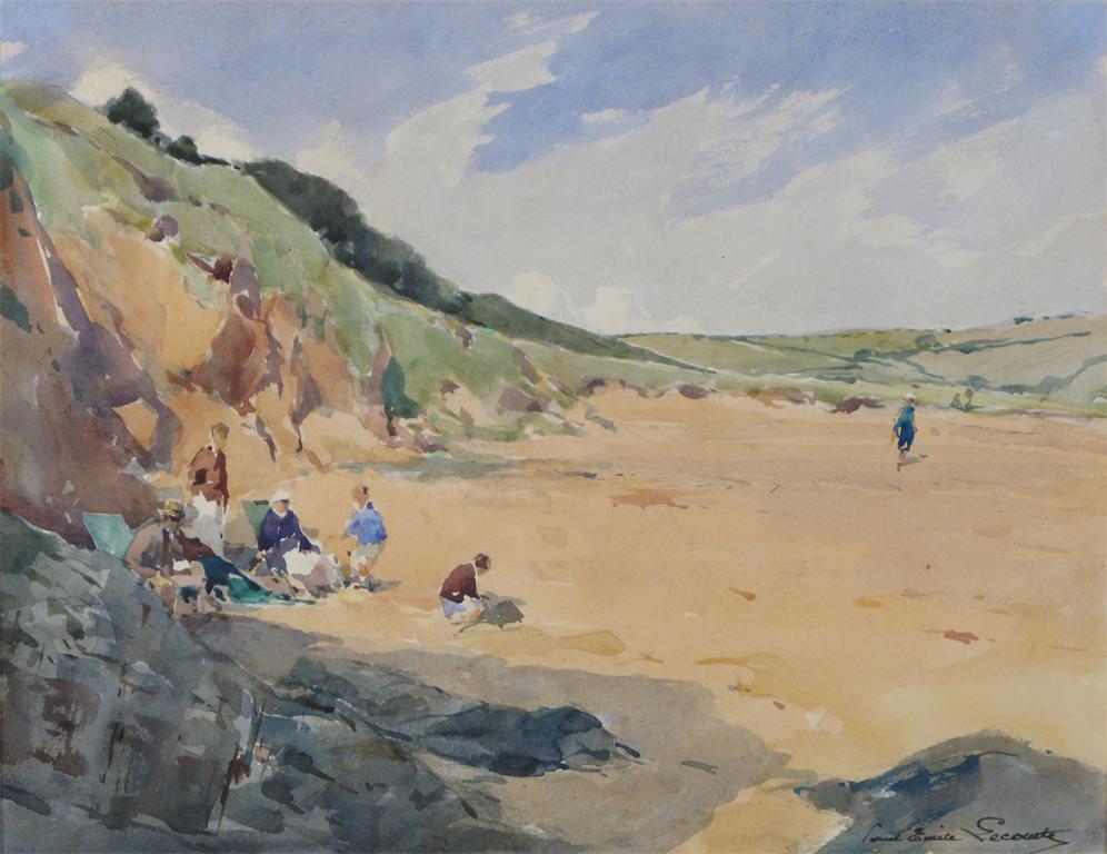 Paul Emile Lecomte (French 1877-1950) A picnic on the beach Signed Watercolour 26 x 34cm; 10¼ x...