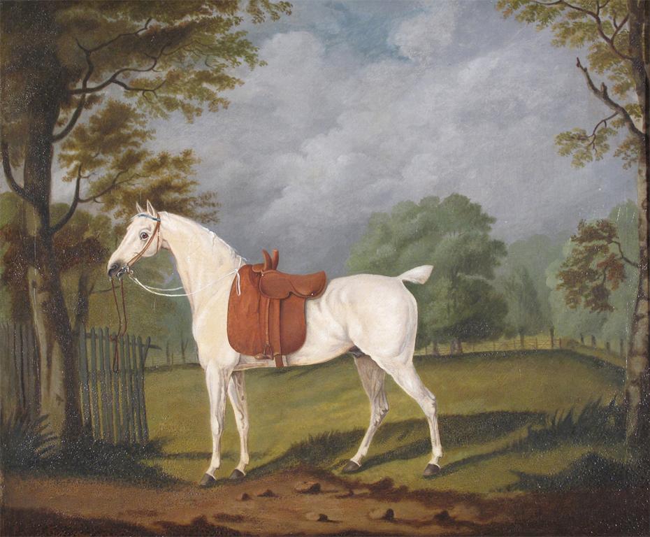Circle of John Sartorius A grey hunter in a landscape Oil on canvas 51 x 58.5cm; 20 x 23in