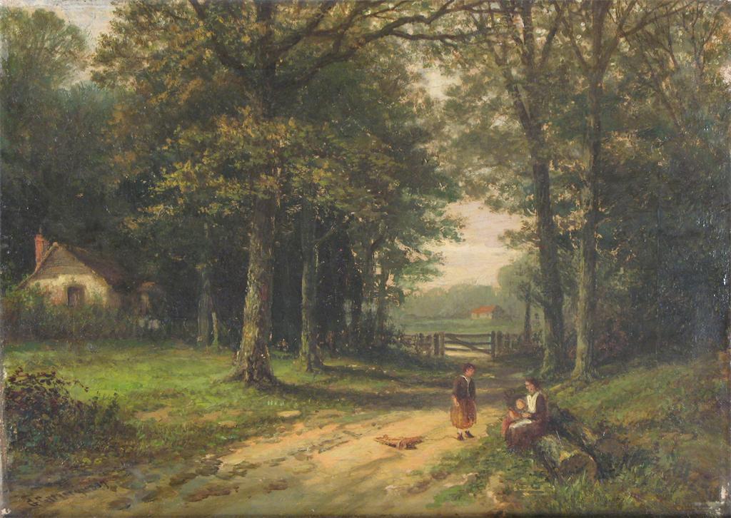 G. Gregory (19th Century) A wooded path by a cottage Signed and dated 1839 Oil on canvas