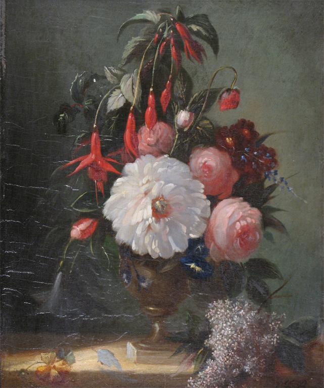 J. L. B. (19/20th Century) Still life of roses and fuchsias Signed with initials Oil on panel...