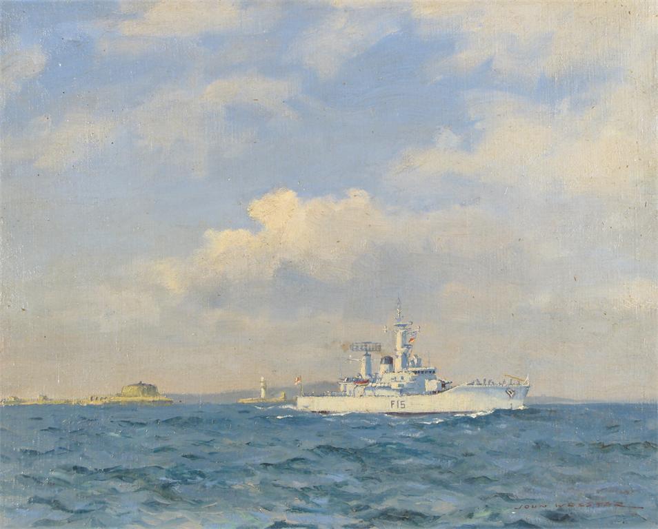 ‡John Webster R.S.M.A. (b.1932) Frigate H.M.S. Euryalus Signed Oil on board 40.5 x 51cm; 16 x 20in