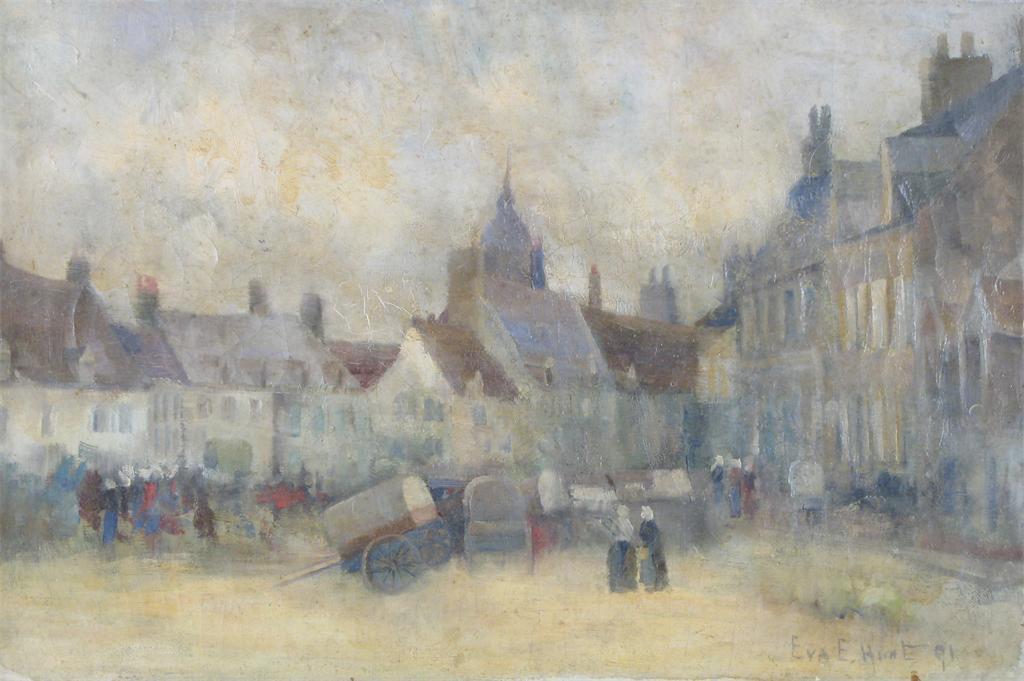 Eva E. Hunt (19th/20th Century) A French market scene Signed and dated 91 Oil on canvas 30 x...