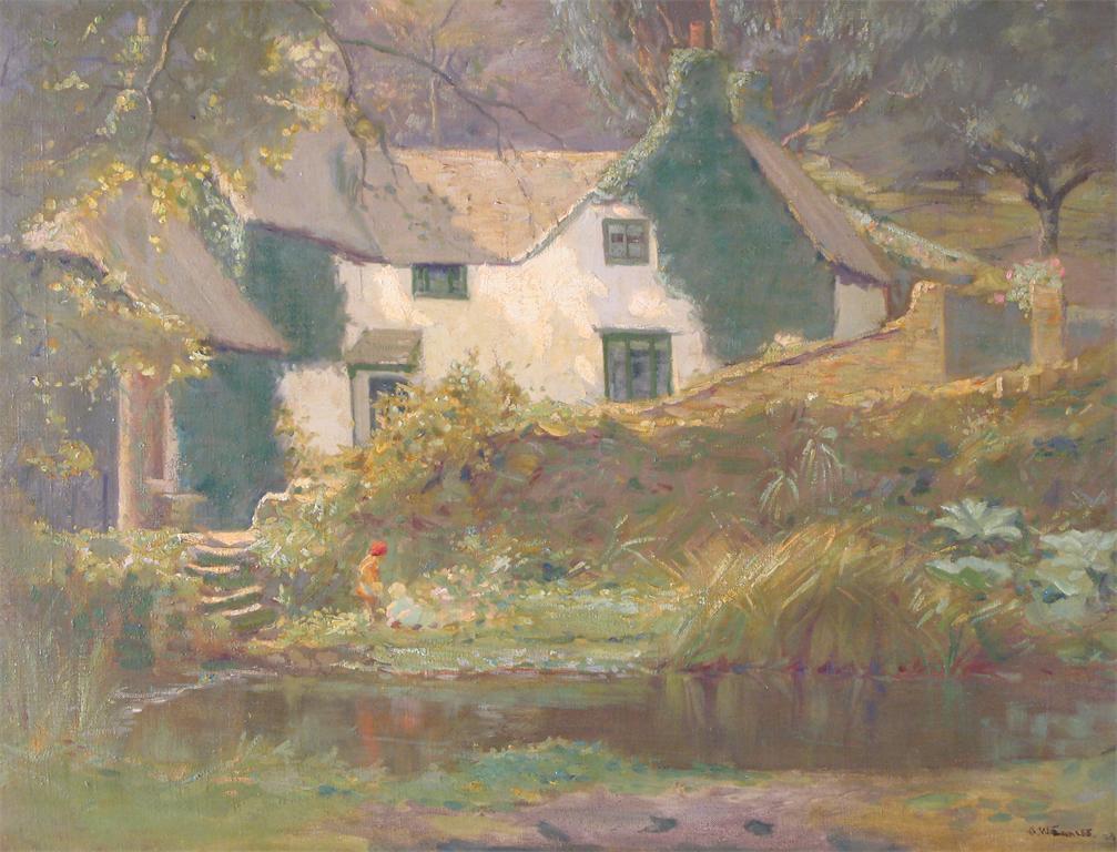 Augustus William Enness (1876-1948) A cottage by a river Signed and dated 23 Oil on canvas 46 x...