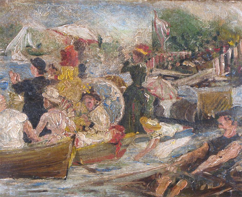 English School c.1900 The Thames at Teddington Titled on the overlap Oil on canvas 28 x 35cm; 11x...