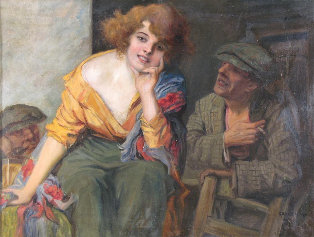 Richard Geiger (Austrian 1870-1945) A young lady with two admirers Signed Oil on canvas 75.5 x...