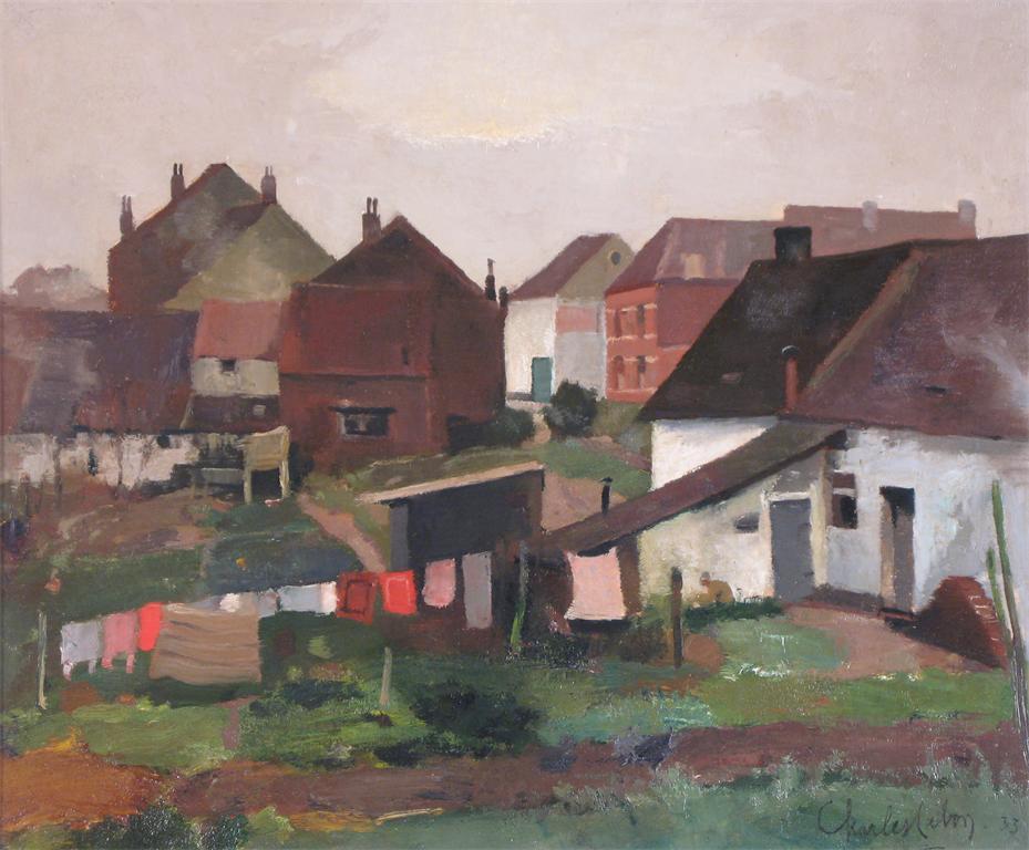 Charles Lebon (Belgian 1906-1957) Continental village scene Signed and dated 33 Oil on panel 38 x...