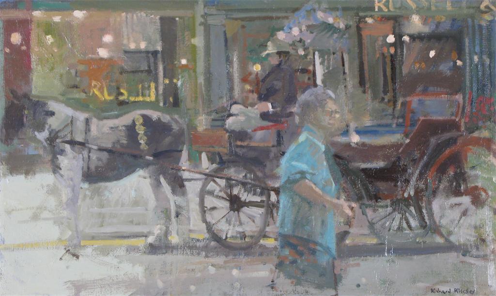 ‡Richard Pikesley N.E.A.C. (b.1951) Horse Taxi , Bath Signed Oil on board 30 x 51cm; 12 x 20in Provenance: Richard Hagen, Broadway, Worcestershire