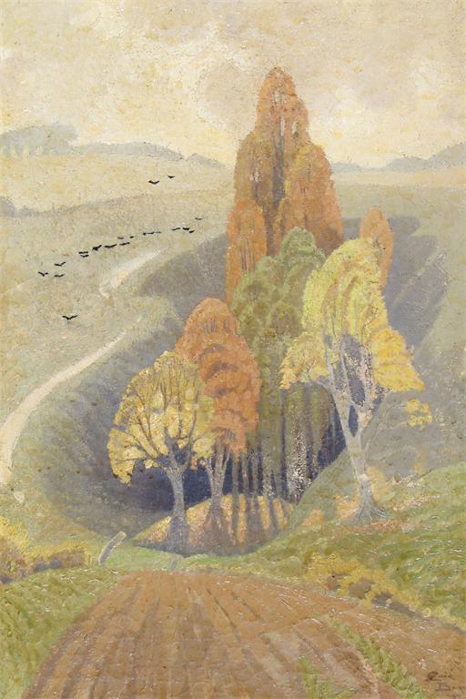 Landscape, possibly near Grovely Woods; Market Square at night, Salisbury