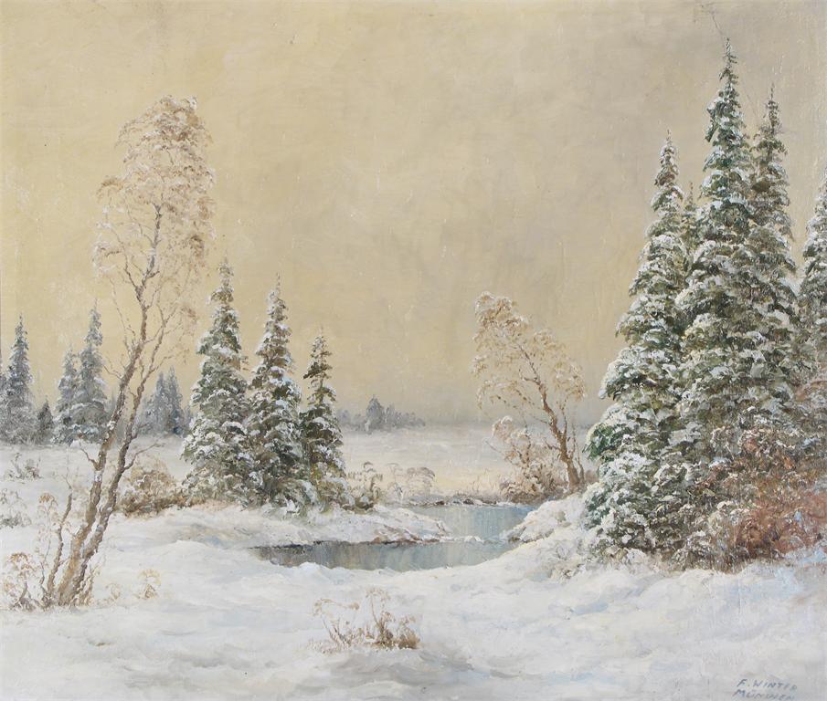 F. Winter (German c.1900) Winter landscape Signed and inscribed Munchen Oil on canvas 61 x 71cm;...