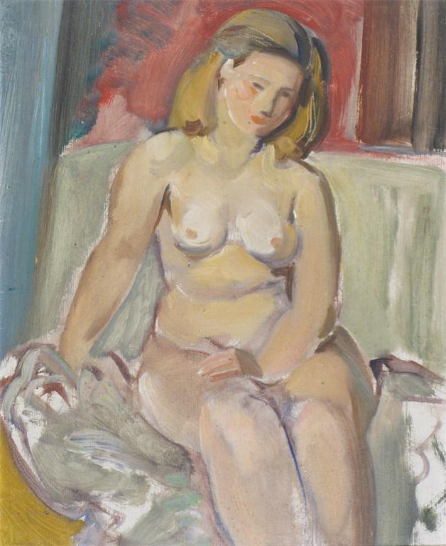 Circle of Ludwig Klimek Study of a seated nude Oil on board 41 x 33cm; 16 x 13in