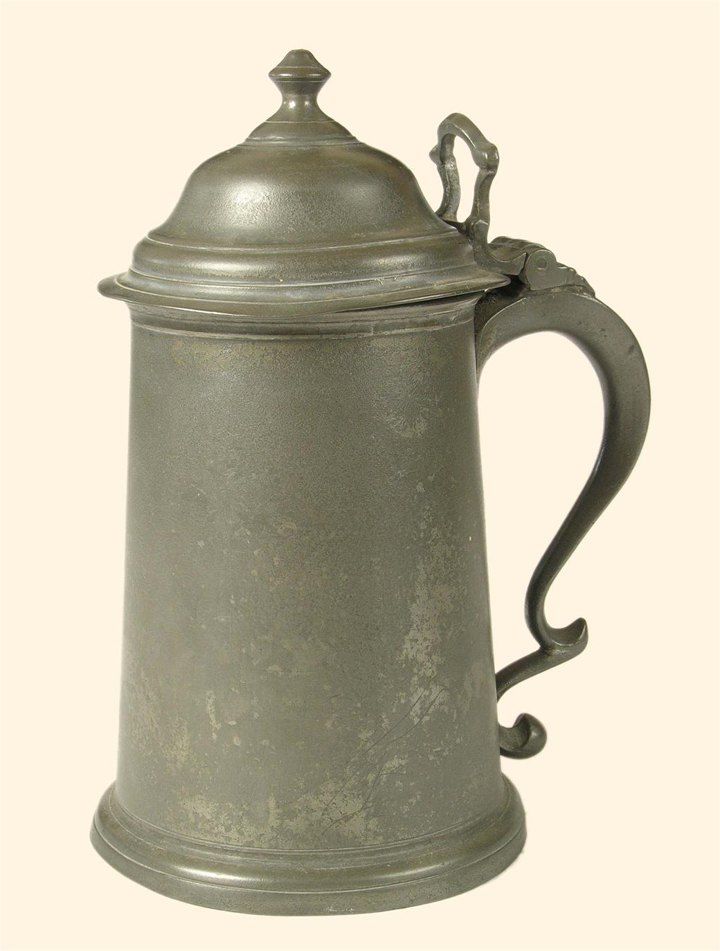 A small pewter spire lidded flagon