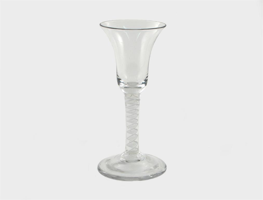 A bell-shaped wine, raised on a multiple strand opaque twist stem above a domed foot, mid 18th century, 15.5cm.