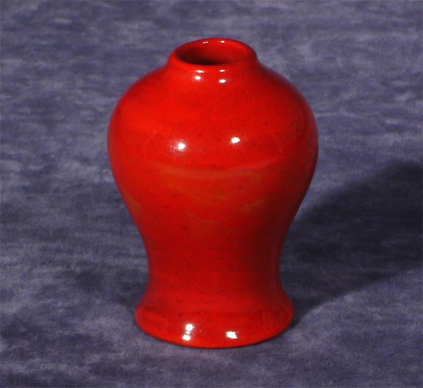 A Royal Doulton miniature porcelain vase probably a trial, covered in a flambe glaze printed mark, painted Davis Castle 01.33 6cm. high