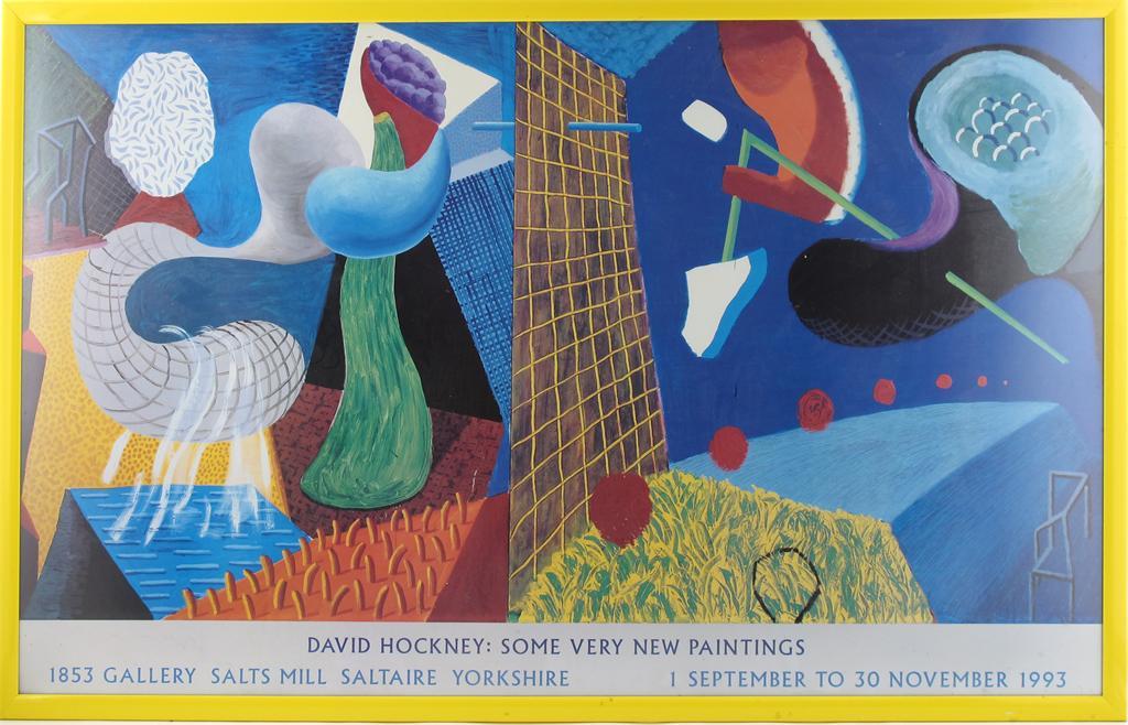 'David Hockney - Some Very New Paintings' a poster, 1 September to 30th November 1993, framed, image 100 x 61.5cm.