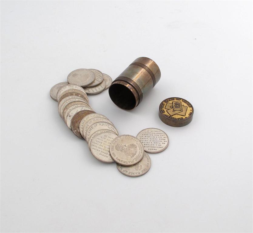 A 19th century old Sheffield plated counter box and twenty-four counters