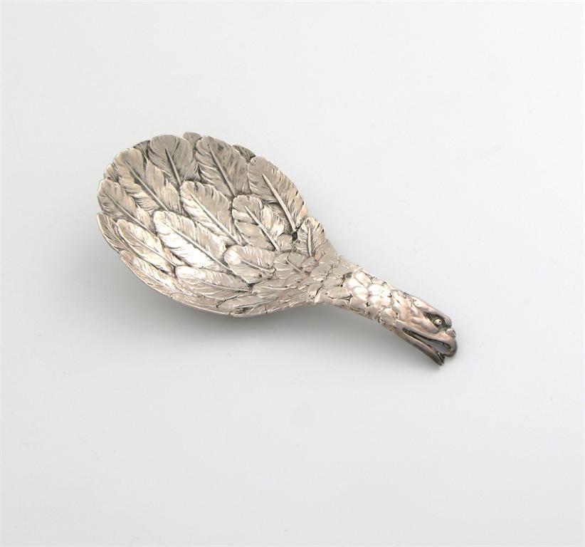 A George III silver eagle's wing caddy spoon, by Joseph Willmore, Birmingham 1814, repaired, length 7.5cm.
