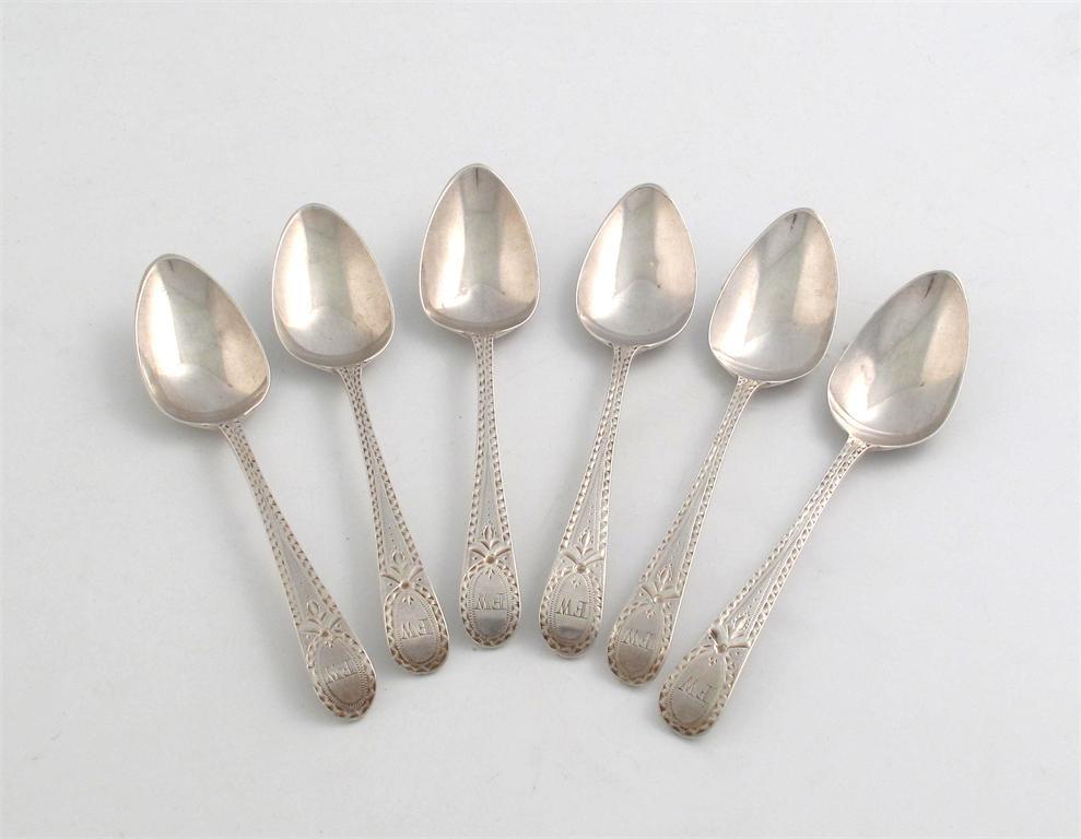 A set of six George III silver Bright-cut pattern teaspoons