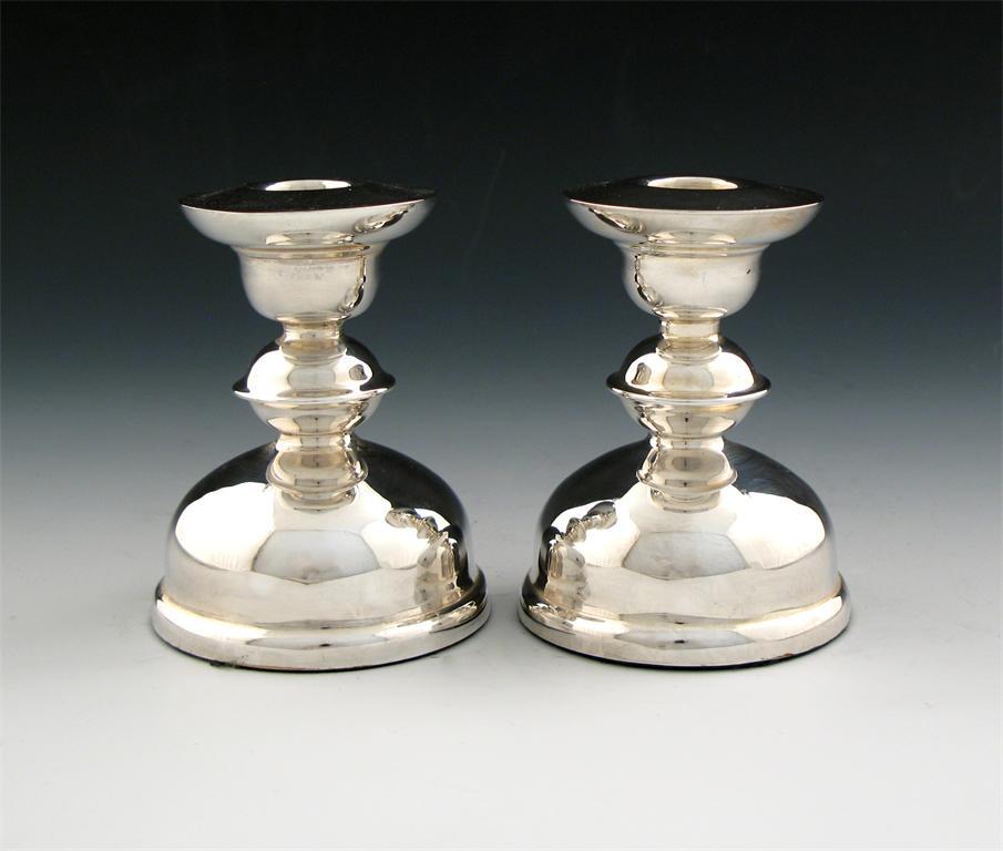 By Roger Squires, a pair of modern silver candlesticks, London 1998, on raised circular bases, knopped stems, plain urn capitals, filled, height 10cm. (2)
