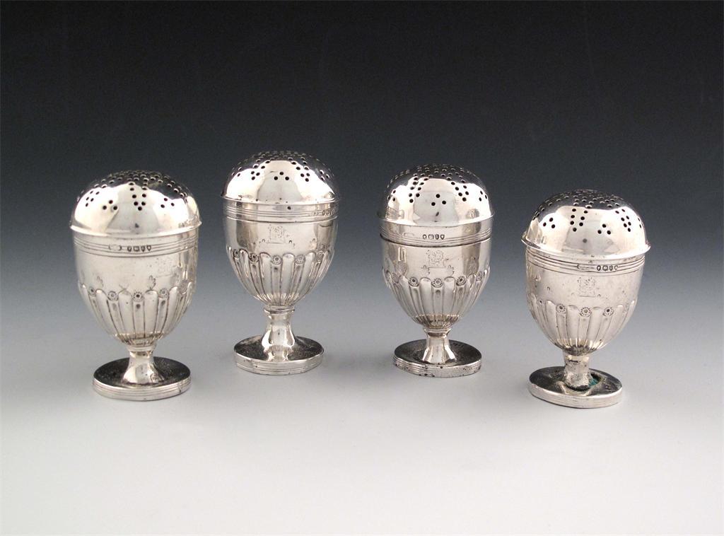 A set of four Victorian silver pepper pots