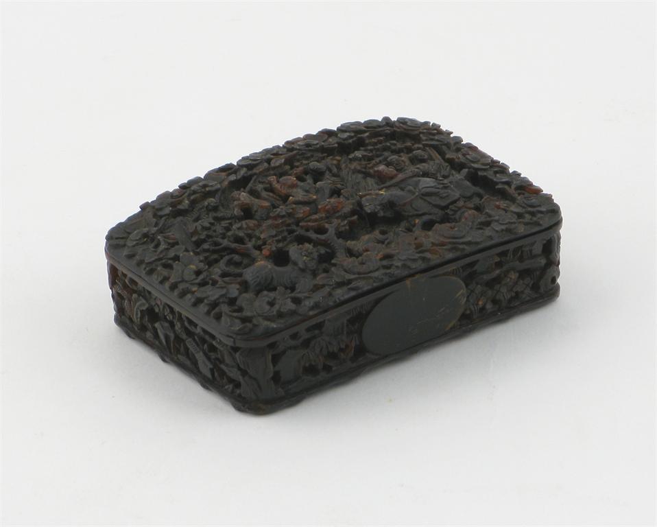 A Chinese carved Canton tortoiseshell snuff box