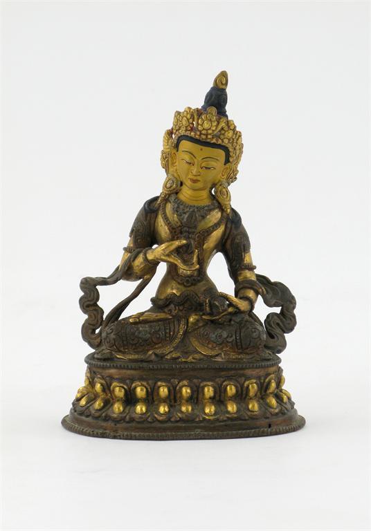 A Tibeto Chinese gilt bronze figure of Vajrasattva
