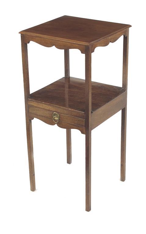 A 19th century mahogany square wash stand, with a later top, 30in (76cm) h, 13.5in (34.5cm) sq.