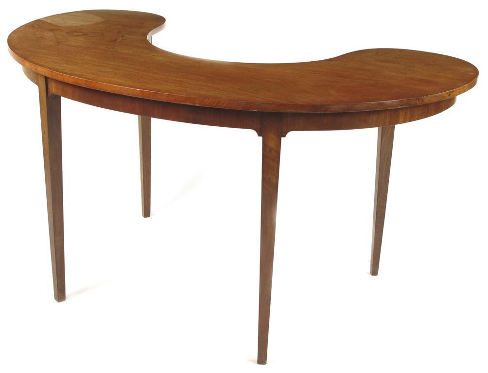 A 19th century mahogany hunt table, of horse shoe shape previously with a rail on square tapering legs, 28.5in (72.5cm) h, 55in (140cm) w, 31.75in (80.5cm) d.