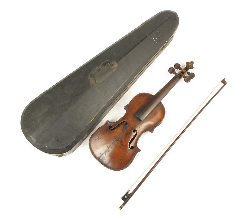 A child's violin, with a one piece back, 10.25in (26cm) LOB, with a box, cased.
