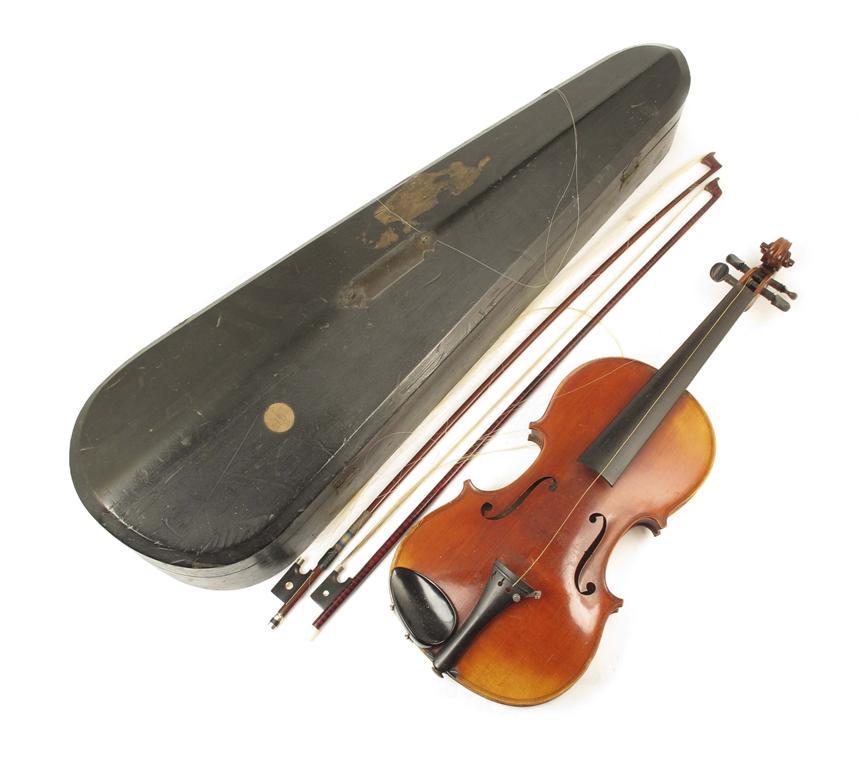 A violin, with a one piece back, the inside with a printed label 'Antonius Stradivarius Cremonensis faciebat anno 1703, AS within a circle', 14in (35.5cm) LOB, with two bows, cased.